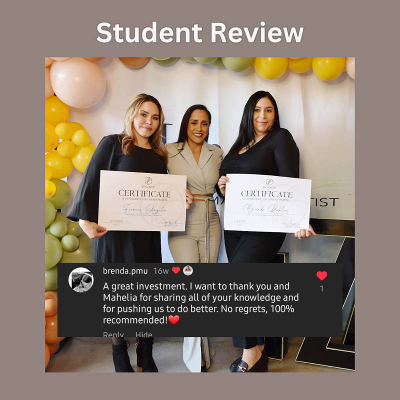 Our training consists of three days of hands-on in-person training and eight months of online education. Includes hands-on experience with models, plus a final exam on a model in month three or eight to obtain your final Brow Artist Certification. This course is designed to introduce you to the world of semi-permanent makeup, so that you can become a working SPMU artist. The best part is - No experience is needed!